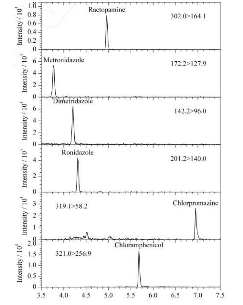 App ID: FLM-T240003 Titank C18 串聯(lián)質(zhì)譜法 12 種獸殘分析 (甲硝唑氯霉素氯丙嗪克侖特羅沙丁胺醇等) 色譜柱:Titank C18 3u 100*2.1mm 貨號:FMD-5559-BONU 流動相:A 乙腈 B 0.1%甲酸 流速:0.3ml/min 進(jìn)樣體積:5 μL 柱溫:40℃