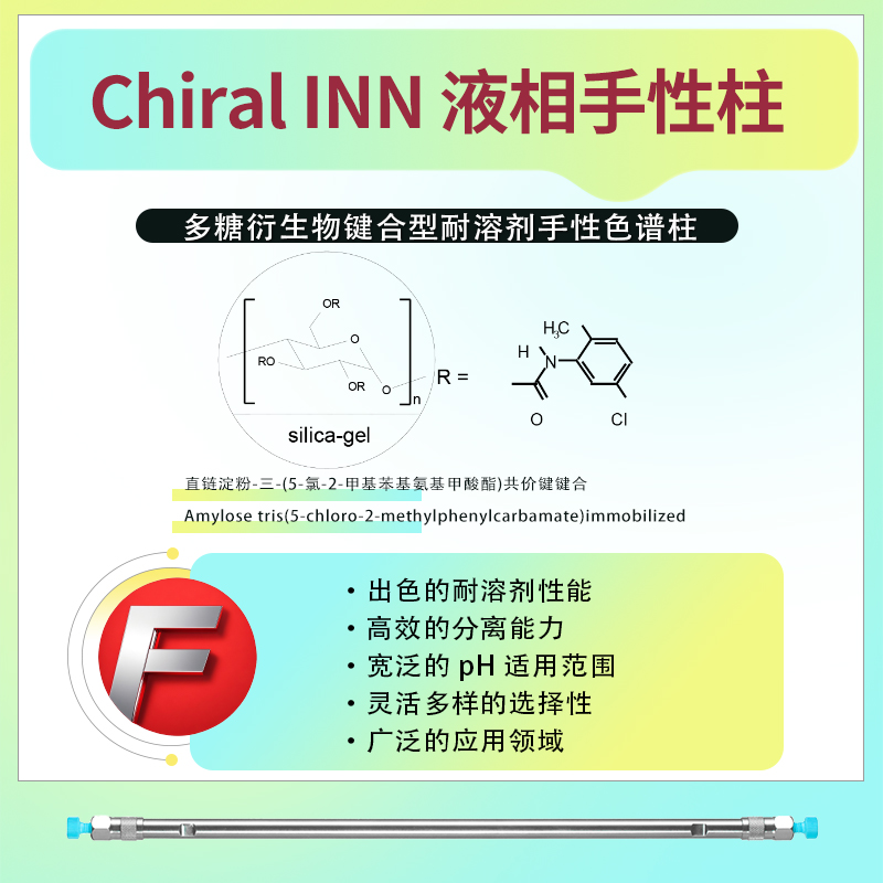 Chiral INN 手性柱廣泛應(yīng)用于液相色譜分析中,特別是在需要分離手性化合物對(duì)映異構(gòu)體的場合。其應(yīng)用場景包括但不限于藥物研發(fā)過程中的質(zhì)量控制、手性藥物的藥代動(dòng)力學(xué)研究、手性化合物的合成與純化等。